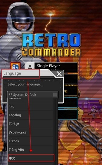 該版本自帶翻譯器為漢化版,但如果系統(tǒng)沒翻譯成功,可以在游戲首頁中左側(cè)的位置找到【語言(Language)】,往下滑找到【中文】,選擇完成后點擊即可將游戲語言改為中文。
