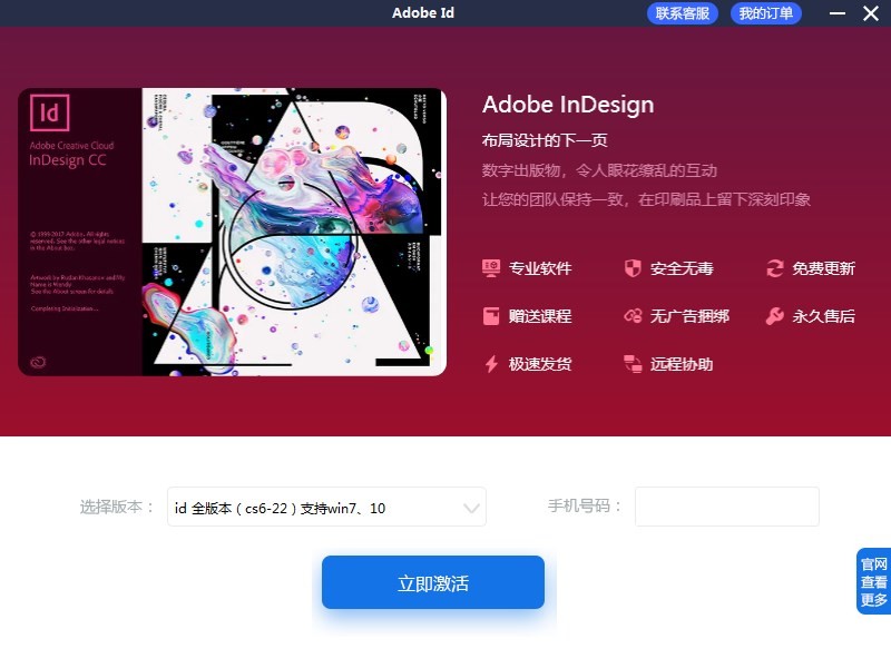 adobe Indesign助手可以幫助你一站式激活安裝adobe indesign,在線你可以選擇對應(yīng)的版本以及留下自己的手機(jī)號碼,會有專門的短信通知,你可以根據(jù)自己的需求來選擇激活安裝,而且沒有任何綁定的,你可以放心使用軟件,歡迎有需要的朋友下載使用!