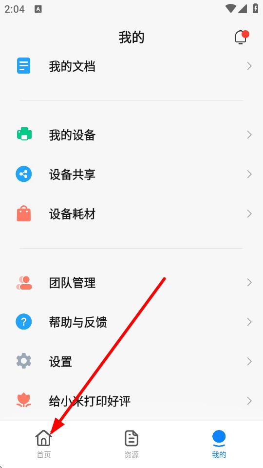 1、打開小米打印app,點擊底部導航欄中的首頁圖標進入首頁界面。