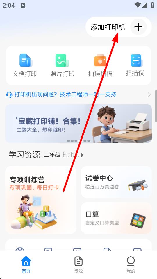 2、在首頁界面中,點擊右上角的添加打印機按鈕。