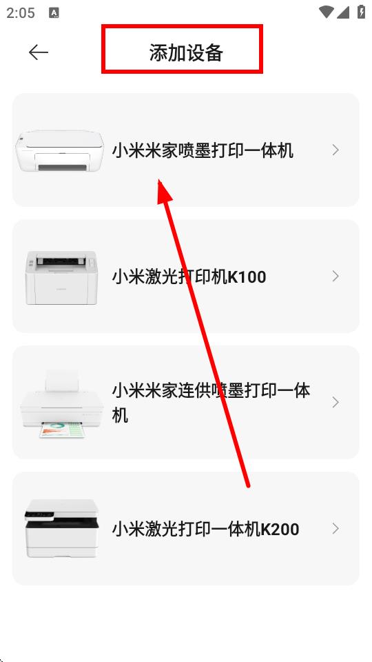 3、進入添加設備界面后,選擇自己擁有的打印機型號,比如小米米家噴墨打印一體機。