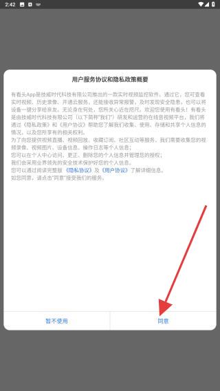 1、打開(kāi)有看頭APP,首屏彈出用戶(hù)服務(wù)協(xié)議和隱私政策概要彈窗,閱讀協(xié)議后,點(diǎn)擊同意。