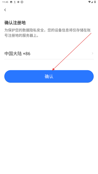 2、注冊(cè)賬號(hào)前,需確認(rèn)注冊(cè)地,確認(rèn)后點(diǎn)擊下方確認(rèn)的按鈕。