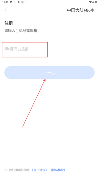 3、進(jìn)入注冊(cè)的界面內(nèi),輸入手機(jī)號(hào)再點(diǎn)擊下一步即可注冊(cè)成功。