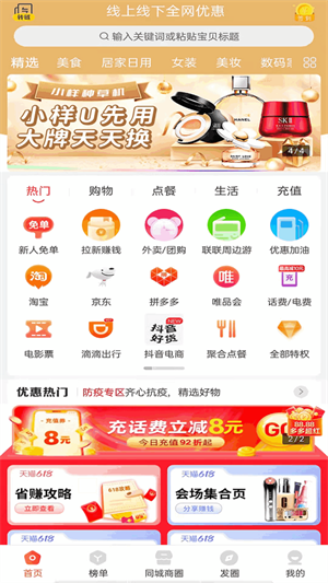 - 包含了眾多類型的優(yōu)惠券,美妝、服裝、家居日用、數(shù)碼等等,滿足不同用戶購(gòu)物需求。