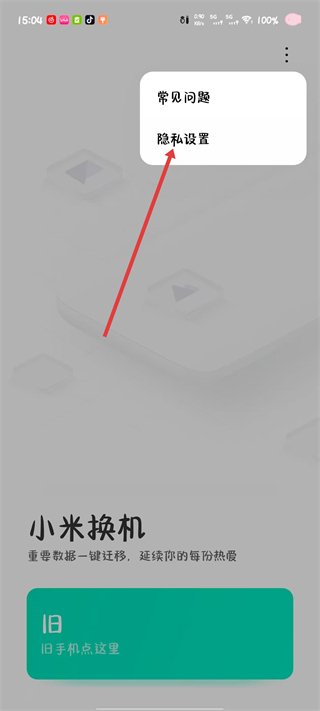 2、在展開(kāi)的菜單選項(xiàng)中選擇隱私設(shè)置,點(diǎn)擊后進(jìn)入小米換機(jī)的隱私設(shè)置頁(yè)面。