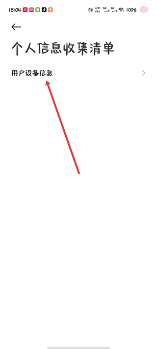 4、在個(gè)人信息收集清單頁(yè)面中選擇用戶(hù)設(shè)備信息選項(xiàng),點(diǎn)擊后即可查看內(nèi)容。