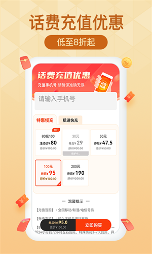 - 話費(fèi)充值優(yōu)惠在線領(lǐng)取,用超低的價(jià)格在線話費(fèi)充值,特惠慢充自由選擇,低至8折優(yōu)惠領(lǐng)取。