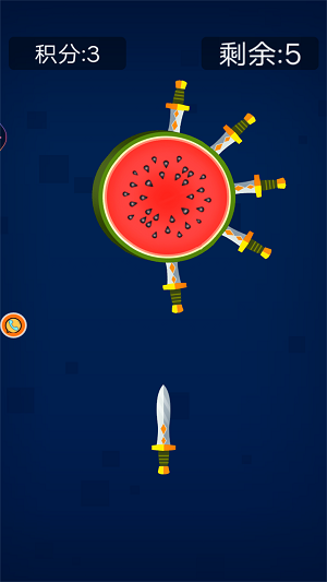 3、需要在西瓜上盡可能的插上更多的刀,這樣就可以完成游戲的挑戰(zhàn)。
