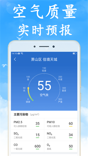 5、【空氣質(zhì)量實(shí)時(shí)監(jiān)控】實(shí)時(shí)監(jiān)控空氣質(zhì)量,關(guān)愛健康全面護(hù)航。