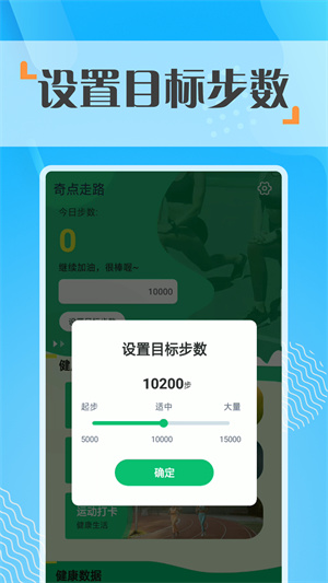 - 自由設(shè)置目標步數(shù),根據(jù)自己的運動程度來設(shè)置,每天都能按照目標來打卡,激勵自己來走路運動;