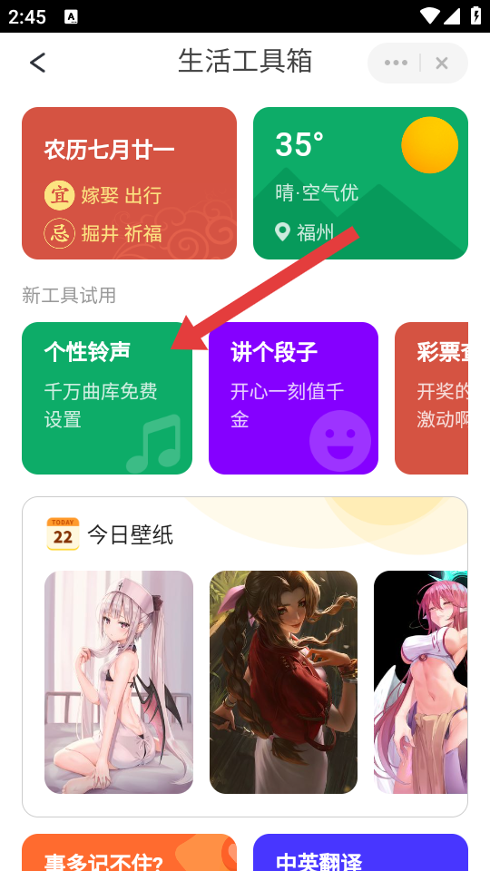 2、在生活工具箱界面,點擊個性鈴聲選項,進入彩鈴設置頁面。