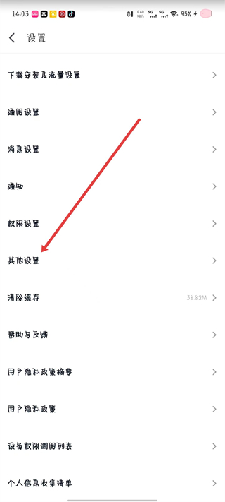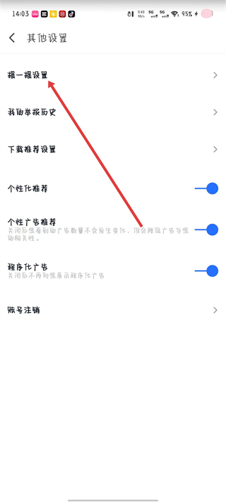 3、在其他設置界面中,選擇搖一搖設置選項。