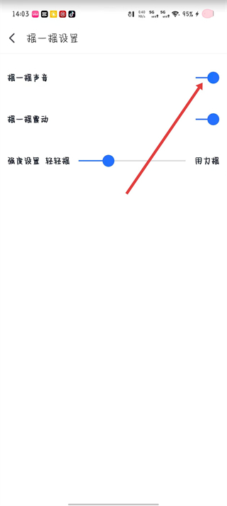 4、進入搖一搖設置頁面后,點擊搖一搖開關即可。