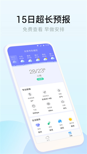 樂享天氣為用戶提供了長達(dá)15天的超長天氣預(yù)報,讓用戶可以更放心的查看未來的天氣信息,還有很多的生活服務(wù)內(nèi)容也可以免費(fèi)的直接了解,各個地區(qū)的天氣都可以直接在線了解,還可以同時添加多個地區(qū),更好的了解其他區(qū)域的天氣預(yù)報。
