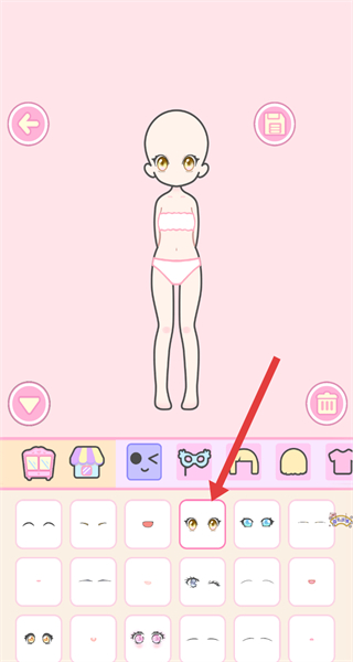 3、在分類下選擇具體的裝扮部件如眼睛樣式,點擊應用到角色上。