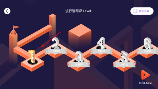 1、進(jìn)入智能鋼琴APP的課程界面,選擇流行鋼琴課 Level1的第1課,進(jìn)入課程學(xué)習(xí)頁面。