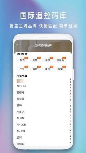 手機電視空調遙控器是一個智能的手機軟件,為用戶提供了一個最便捷的智能控制服務,通過軟件就可以快速的方便來就需要個控制各種的設備,讓我們的生活變得更加的便捷起來,輕松的控制到家里面的家電來讓我們使用。