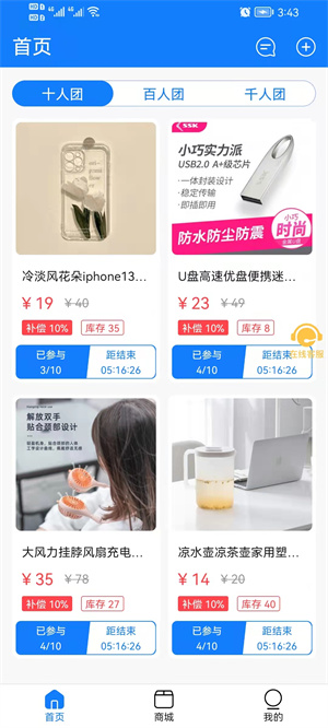 - 參與眾多購(gòu)物拼團(tuán)來(lái)領(lǐng)取購(gòu)物優(yōu)惠,在指定的時(shí)間內(nèi)參與拼團(tuán)搶購(gòu),讓你享受到購(gòu)物福利,在線省錢購(gòu)物。
