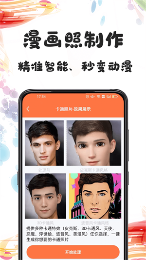 - 帶來(lái)趣味的漫畫(huà)照制作服務(wù),每個(gè)小伙伴都能在線輕松制作漫畫(huà)圖片,簡(jiǎn)單操作智能完成制作,秒變動(dòng)漫;