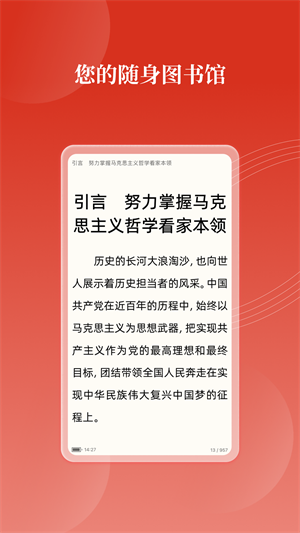 黨建云書館讓所有的用戶都可以非常簡單的在線閱讀需要的書籍,這款軟件的操作方式是非常的簡單方便,所有用戶注冊登錄后即可進入該圖書館進行文獻資料的借還和使用,而且在這里的所有圖書都是保障是正版的資源,讓用戶可以放心的借閱。