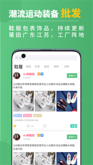 運(yùn)動(dòng)鞋貨源是一款可以幫助用戶輕松的在線查找各種貨源的平臺,這款軟件為所有的用戶提供了非常多的商品資源,輕松的在線查看很多的內(nèi)容也是非常的簡單,還有很多的服務(wù)信息也是免費(fèi)的在線了解,你喜歡的各種商品都在這里。