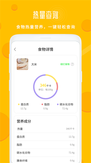 4、【食物熱量輕松查看】提示是否為綠燈、黃燈、紅燈食物,為您的減肥之旅保駕護(hù)航;