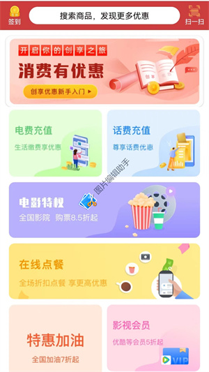 - 每天在線領(lǐng)取生活優(yōu)惠,包含了影視、飲食、加油、影視會(huì)員、電費(fèi)、話費(fèi)等服務(wù),隨時(shí)可享受;