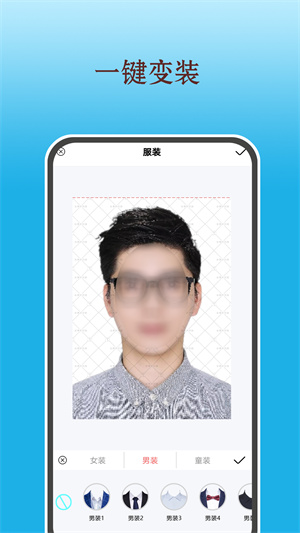 - 加了換裝服務(wù),可以輕松替換你的證件照服裝,各種的正裝服裝一鍵選擇,快速完成服裝替換;