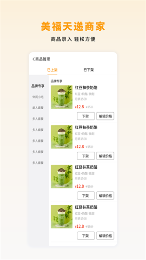 美福天遞商家是一款專為外賣商家的平臺(tái),在這里可以輕松管理自己的外賣店鋪,輕松接單完成外賣制作,所有的退款、用戶訂單都能在線處理,隨時(shí)管理店鋪中的外賣美食商品,每天的收入可以看得見,讓大家可以輕松在線管理自己的訂單。