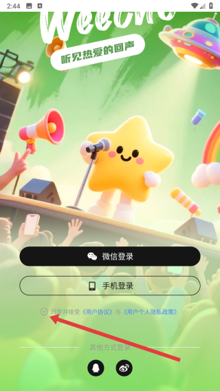 1、在進(jìn)入到app后,需先點(diǎn)擊勾選同意并接受按鈕才可以登錄。