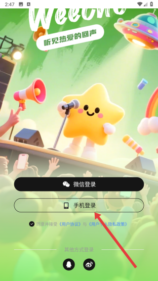 2、在勾選好同意按鈕后,可以選擇點(diǎn)擊手機(jī)登錄按鈕,進(jìn)行登錄操作。