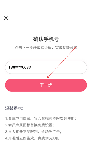 3、在確認手機號界面,點擊下一步按鈕。
