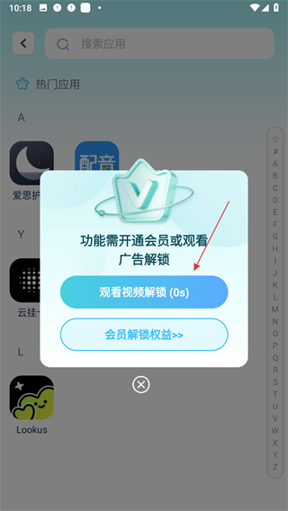 4、驗證完成后,點擊觀看視頻解鎖按鈕,觀看視頻后就能完成應(yīng)用的隱藏操作。