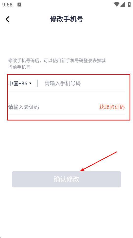 4、在修改手機號頁面,輸入新的手機號碼,填入驗證碼,點擊確認修改。