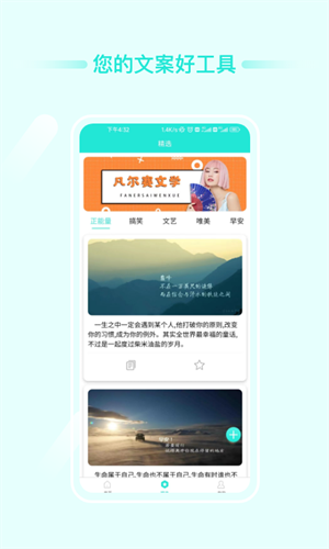 - 文案搜索功能,幫助你輕松找到自己喜歡的文案,與你的文字產(chǎn)生共鳴;
