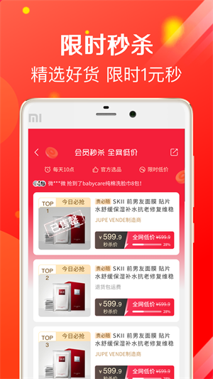 - 會員秒殺活動每天參與,在每天的上午10點可以參與秒殺活動,用全網(wǎng)底價秒殺大牌好貨;
