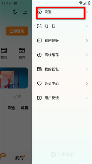 2、在功能菜單中,點(diǎn)擊設(shè)置選項(xiàng),進(jìn)入設(shè)置頁(yè)面。