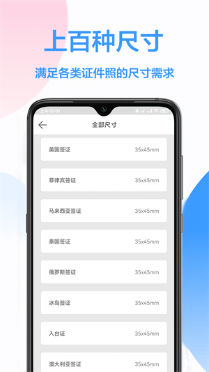 - 軟件還能智能推出當(dāng)下熱門的證件照尺寸供你選擇,更快捷、高效的用手機制作證件照;