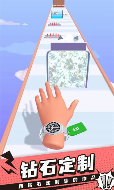 1、特別的跑酷方式,玩家需要操控的角色是一只戴著手表的手,看起來非常的別致新穎;