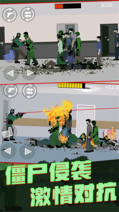 3、驚險(xiǎn)刺激的槍戰(zhàn)對(duì)決,和僵尸進(jìn)行激戰(zhàn),場(chǎng)面非常驚險(xiǎn),玩家可以體驗(yàn)到一場(chǎng)刺激的槍戰(zhàn)對(duì)決。