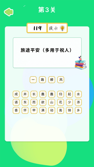 3、小清新的游戲界面非常清爽,在眾多的答題欄中可以選擇正確的漢字進(jìn)行組合。