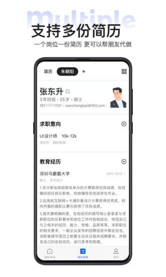1、支持創(chuàng)建多份簡(jiǎn)歷,方便大家針對(duì)不同的公司崗位做出更加精準(zhǔn)的簡(jiǎn)歷;