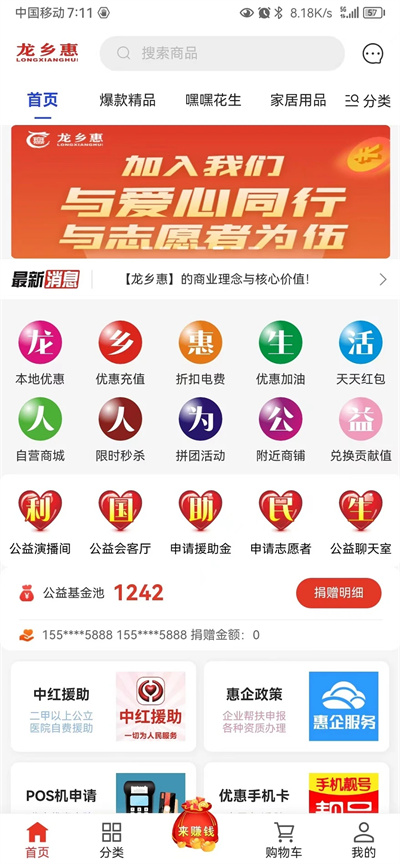 龍鄉(xiāng)惠APP是一款可以給予大家隨時(shí)了解更多的電商服務(wù)軟件,在針對(duì)手機(jī)的購(gòu)物上可以有更多的選擇,我們可以從中了解更多的產(chǎn)品購(gòu)物選擇,也可以與用戶們更多的生活本地服務(wù)幫助。