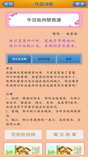 2、在這里可以獲得詳細(xì)的詩歌內(nèi)容,并查看相應(yīng)的注釋;