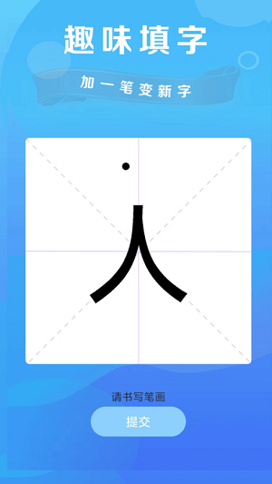 3、第一種是給給定的單詞加上筆畫(huà)組成漢字過(guò)關(guān)。