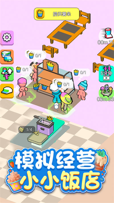 2、好玩的飯店經(jīng)營玩法,玩家可以既可以在這里制作美食,研究各種不同美食的做法,也可以招聘員工,將自己的飯店擴(kuò)大;