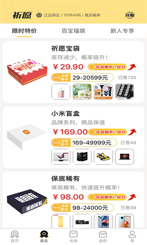 祈愿盲盒可以隨時(shí)隨地在瀏覽和玩的同時(shí)享受全新的購物體驗(yàn),大量盲盒商品將為你更新,還能通過平臺(tái)特色的盲箱開箱形式,讓你以低價(jià)買到更多驚喜商品,提供更多有趣的商品資源。