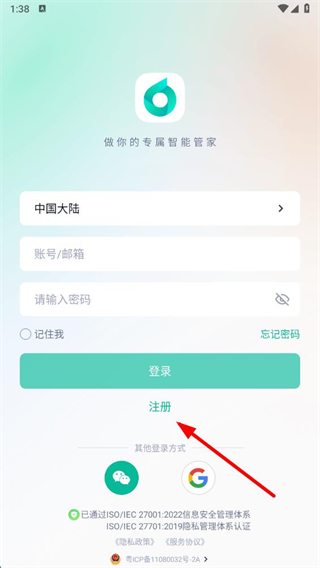 1、打開叮叮智能app,在登錄頁面點擊注冊選項,進入注冊頁面。
