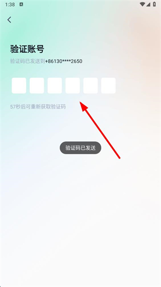 3、在驗證賬號頁面輸入收到的驗證碼,完成賬號驗證。